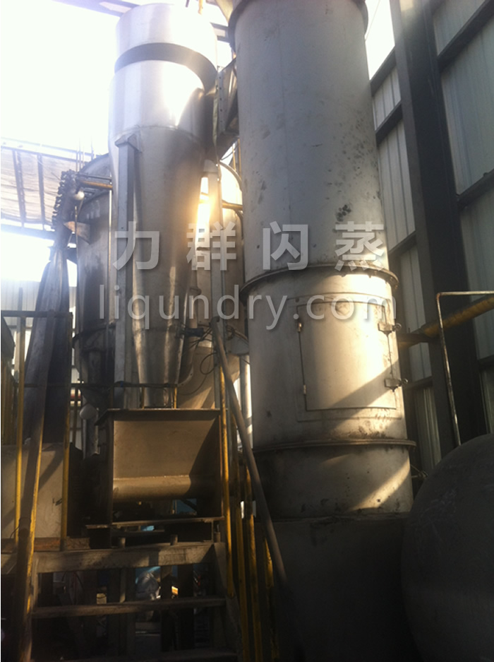 經(jīng)換熱器加熱后的潔凈空氣被鼓入進風口,以適宜的速度旋入干燥室底部的環(huán)隙,然后按切線方向進入干燥室,并呈螺旋狀上升:同時,物料則由可無級調(diào)速的加料器定量加入塔內(nèi)。在干燥塔內(nèi),物料與熱空氣進行充分、高效的質(zhì)熱變換,被干燥的粉狀物料隨同熱風一起輸送至分離器,其中成品收集包裝,而尾氣則進一步經(jīng)除塵裝置處理后排空。